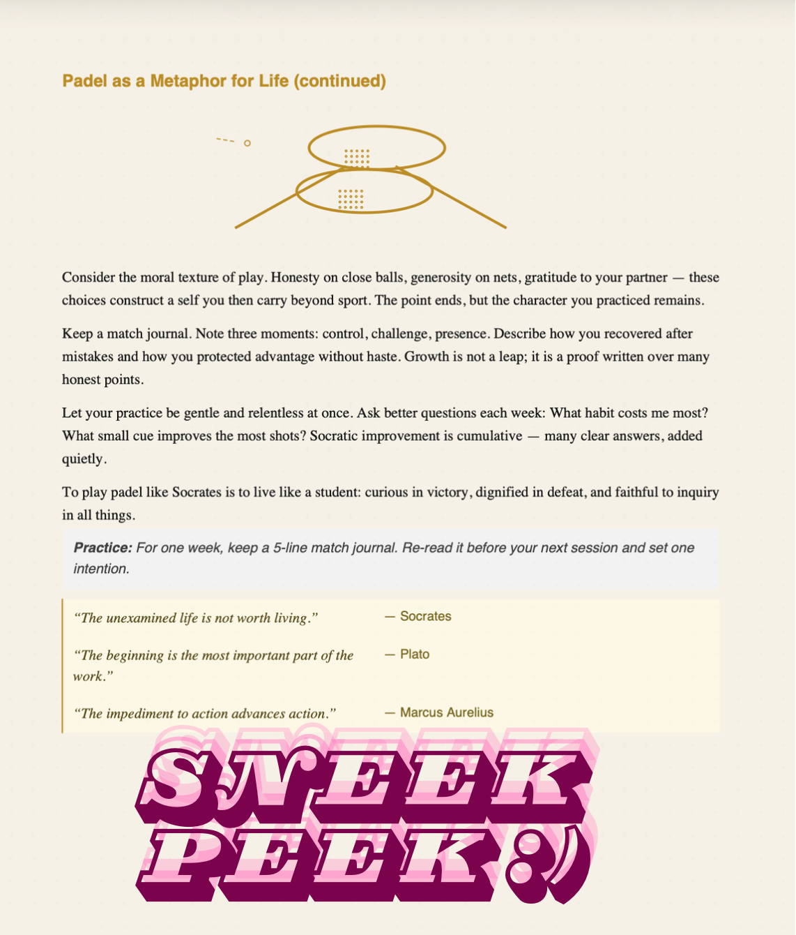 Both courses are PDFs you can download and keep forever. Buy once, and you get the full beginner course and the Play Padel Like Socrates course together.